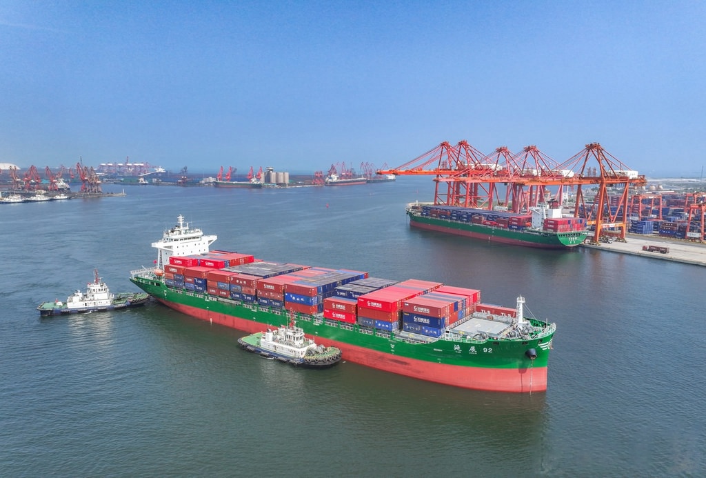 2025年7月30日,货轮向唐山港京唐港区靠泊。(河北日报资料片)河北日报记者赵杰摄