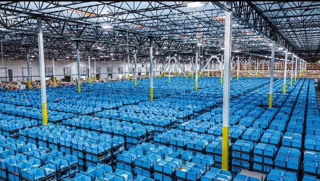 菜鸟洛杉矶仓正在作业的自动存储分拣区