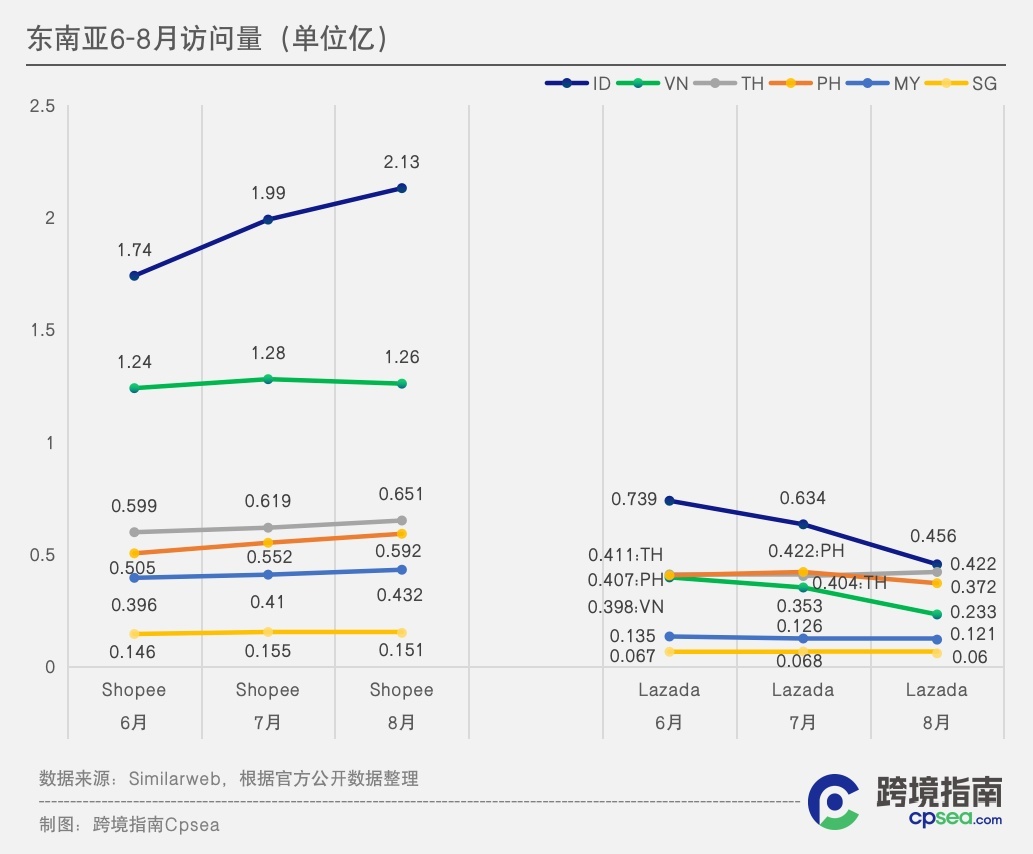 Similarwed:9月Shopee总访问量上涨4.4%,领先于Lazada