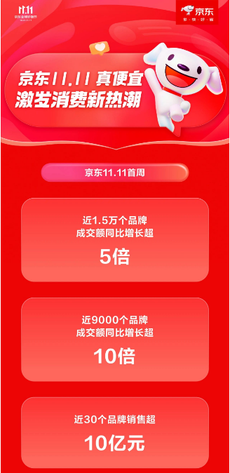 2023双11|京东双11开场4分钟成交额破亿 近1.5万个品牌成交额增5倍