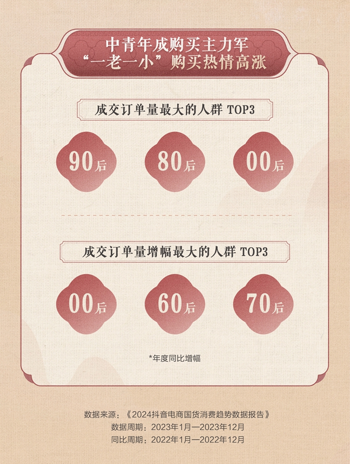 2024抖音电商国货消费趋势数据报告:“00后”“60后”成交订单量增幅大