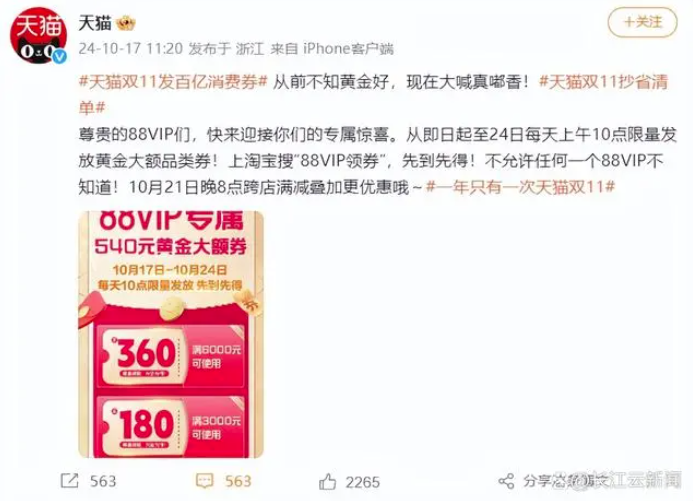 公开平台显示,淘宝天猫平台从10月17日起至24日,每天上午10点限量发放黄金大额品类券,用户抢到券后就可使用下单,但并没有写明哪些情况下会被退单。