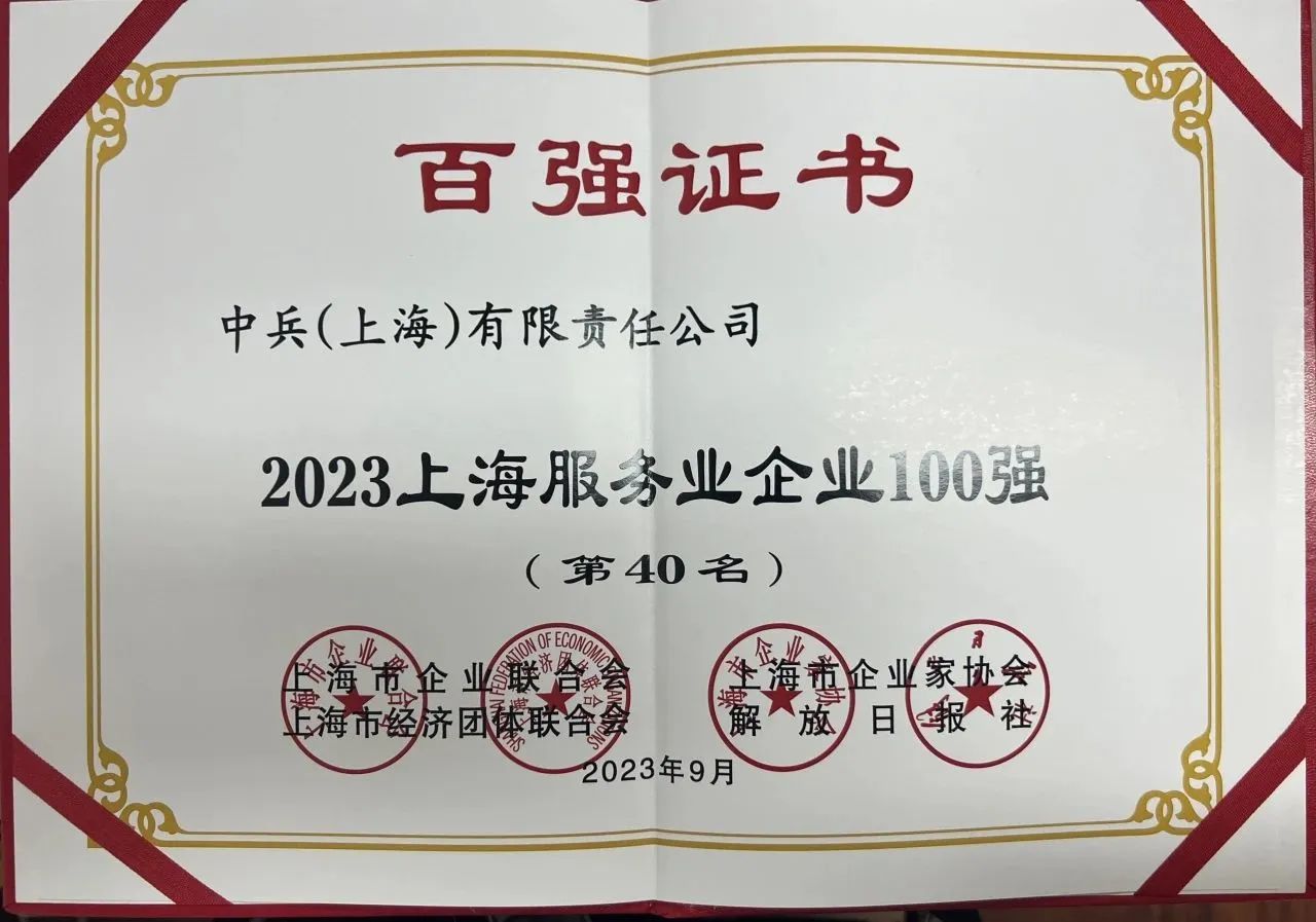物资集团中兵上海公司蝉联2023上海服务业企业100强