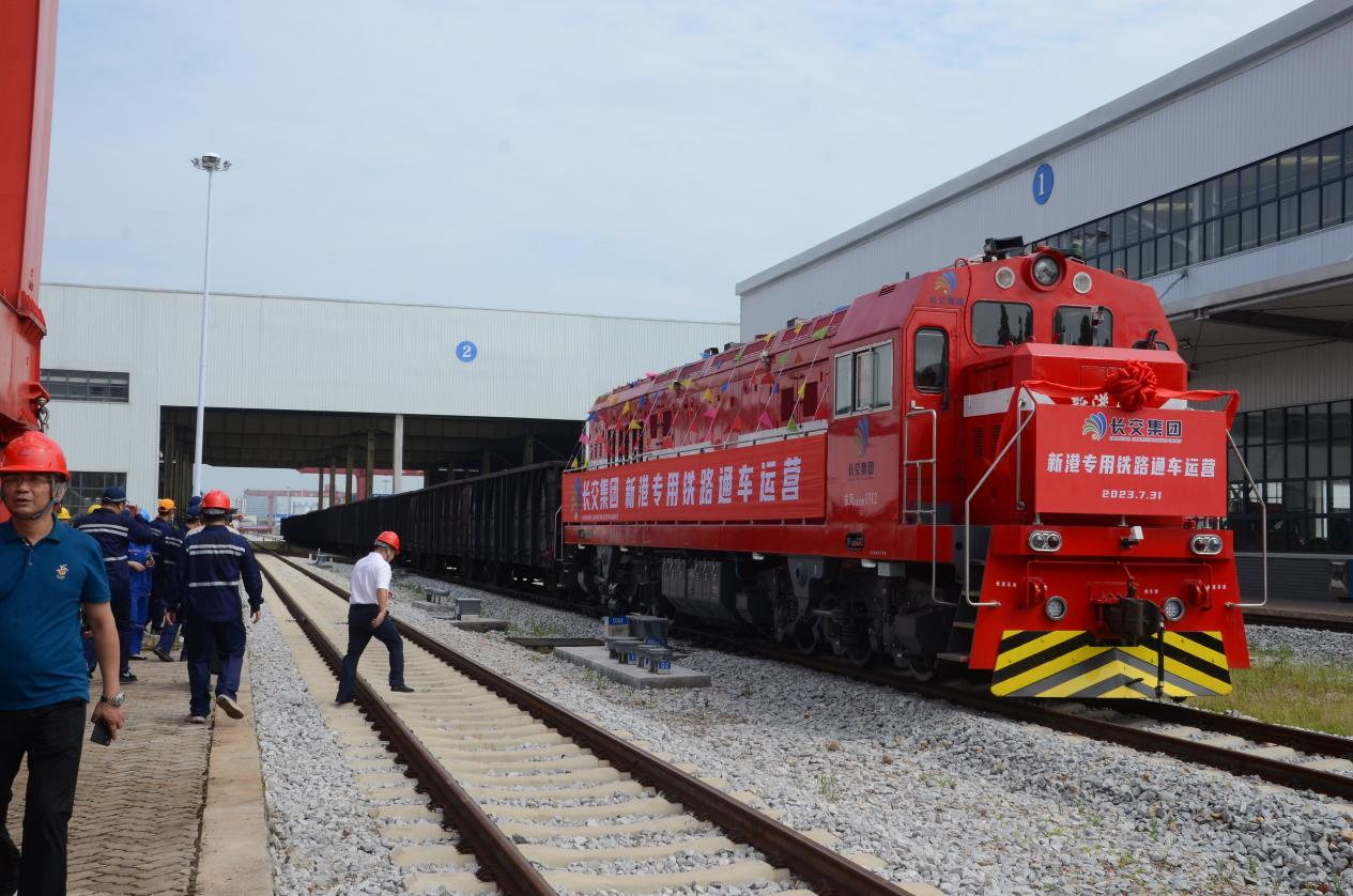 2023年7月31日,“新港1号”内燃机车满载涟钢运往华东和出口的钢材,驶入长沙新港,省会长沙首条疏港专用铁路正式通车运营,实现了港口与京广线等国铁干线的无缝衔接,打通了水铁公多式联运“最后一公里”,长沙新港正式迈入“水铁公”多式联运时代。
