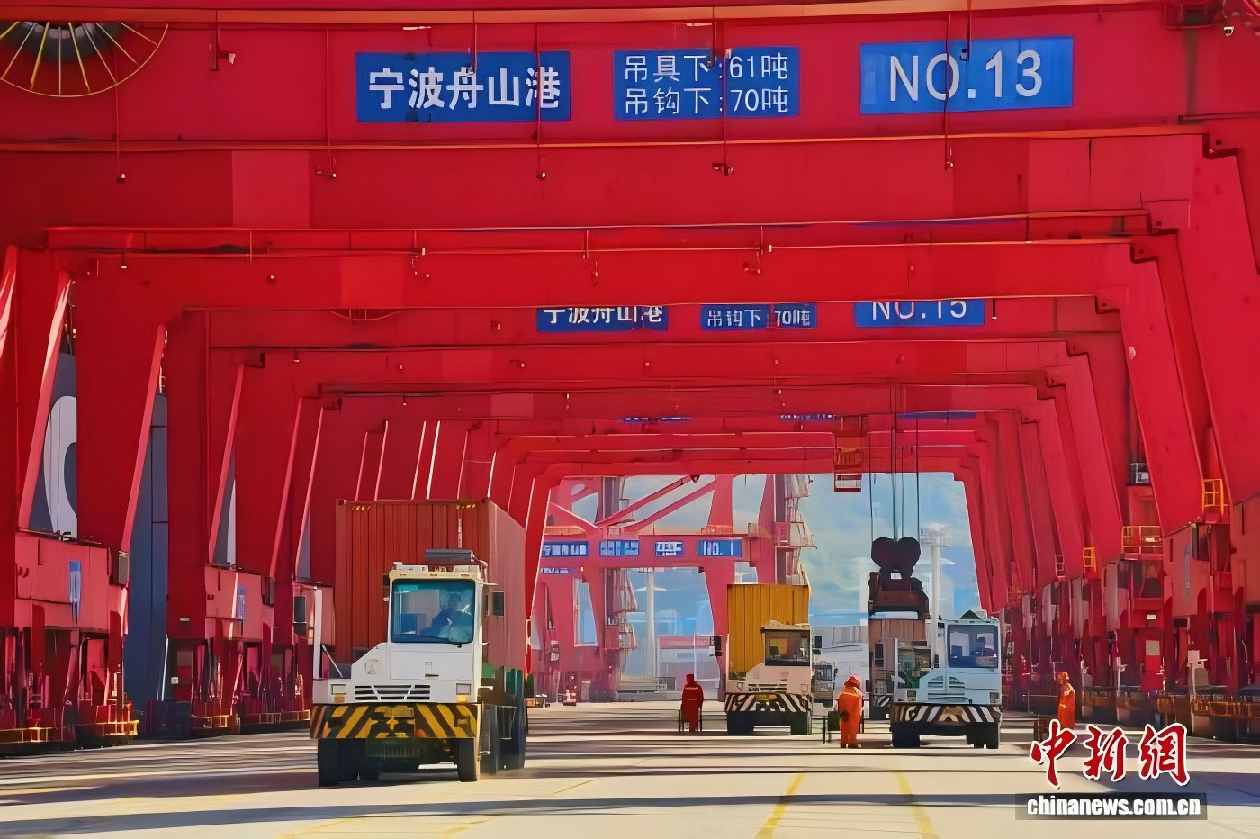 近日,浙江宁波舟山港穿山港区集装箱码头作业现场。吴梦凯 摄