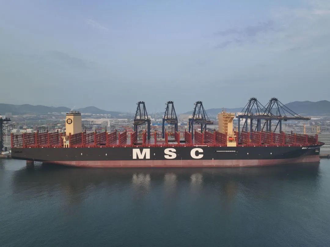 大连港迎来全球最大集装箱船“地中海尼古拉马斯特罗”轮