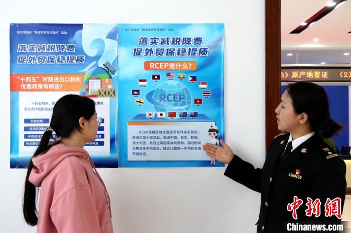 海关关员宣讲RCEP惠企政策。哈尔滨海关供图