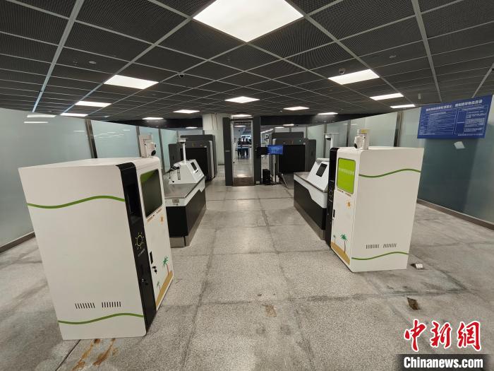 4月7日,海口新海港综合客运枢纽,旅检通道内的毫米波人体检查设备、X光机、自主验证闸机等设备都已安装完成。中新社记者 王子谦 摄