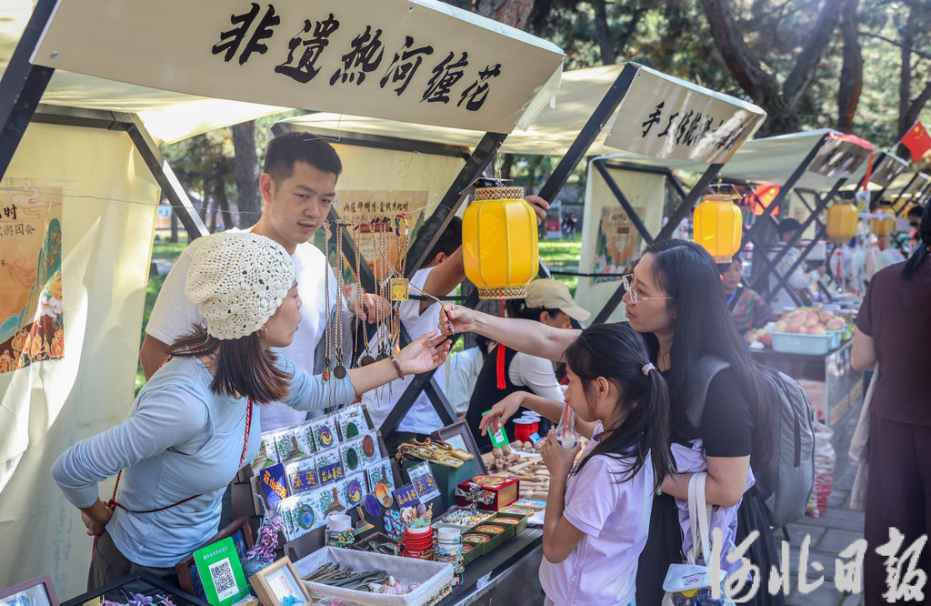 10月3日,游客在承德避暑山庄文化市集购买商品。河北日报记者李佳泽摄