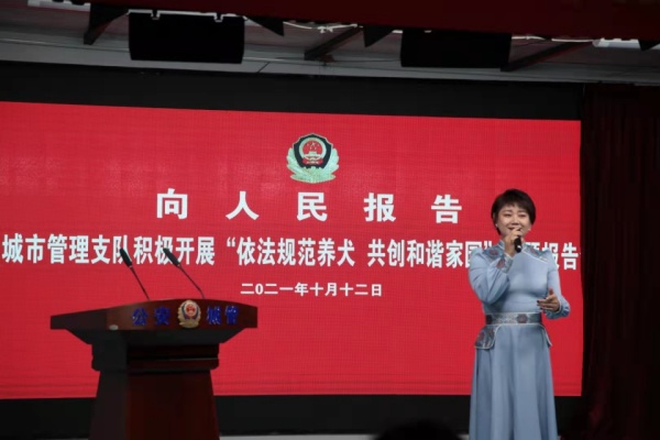 在现场,呼和浩特市公安局城市管理支队党支部书记马东平作了题为“依法规范养犬 共建和谐家园”的专题报告。与会人员集体观看《说法论点》电视节目“解读文明养犬那些事儿”和 《严格规范犬类管理,共创和谐文明家园》专题片,同时了观看了精彩的文艺演出。