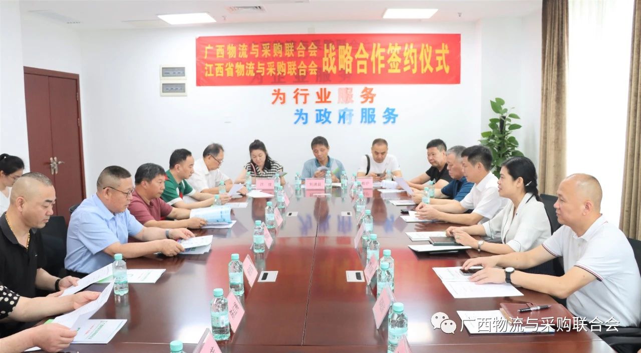 6月27日,江西省物流与采购联合会副会长兼秘书长罗良军率队,携江西省物流企业代表一行到访广西物流与采购联合会,双方进行了深度交流座谈,并签订战略合作协议。桂物联副会长兼秘书长黄爱琼、副秘书长黄齐治、邓晓滨参加座谈。