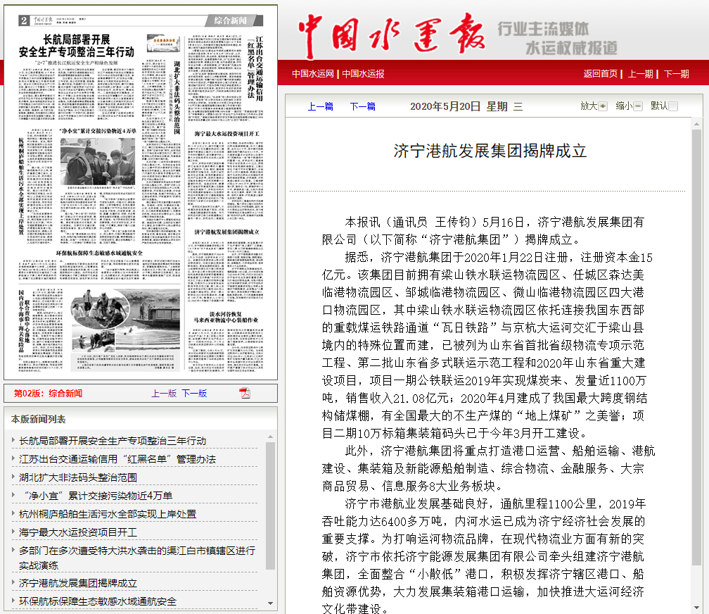 我写的报道除了被《现代物流报》《中国交通报》《中国能源报》《中国煤炭报》《企业家日报》《大众日报》等近百家媒体发表外,像《以全国统一大市场,促交通、物流与港口协同发展》《济宁港航快速发展,动力究竟源自何处?》《看梁山港如何用质量效率书写水运华章》等新闻时评也时常被上海航运交易所、中华航运、国家发改委官网和航运评论转载,大大提升了梁山港的行业知名度。