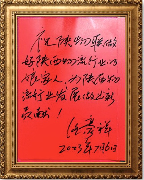 任豪祥为陕物联题词:祝陕物联做好陕西物流行业的娘家人,为陕西物流行业发展作出新贡献!