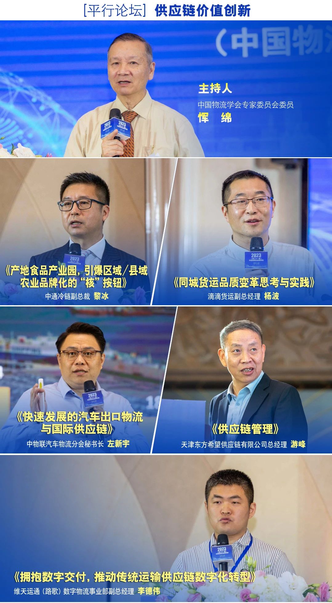 “供应链价值创新”论坛由中国物流学会专家委员会委员恽绵主持。中通冷链副总裁黎冰,滴滴货运副总经理杨波,中物联汽车物流分会秘书长左新宇,天津东方希望供应链有限公司总经理游峰,维天运通(路歌)数字物流事业部副总经理李德伟,分别以《产地食品产业园,引爆区域/县域农业品牌化的“核”按钮》《同城货运品质变革思考与实践》《快速发展的汽车出口物流与国际供应链》《供应链管理》《拥抱数字交付,推动传统运输供应链数字化转型》为主题进行详细阐述。