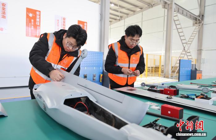 1月中旬,位于甘肃省庆阳市西峰区的西部航空科技(甘肃)有限公司工作人员制作“飞天凤凰”表演无人机。盘小美 摄