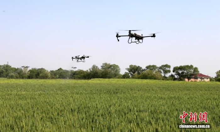 植保无人机喷施叶面肥。(资料图)西峰区融媒体中心供图