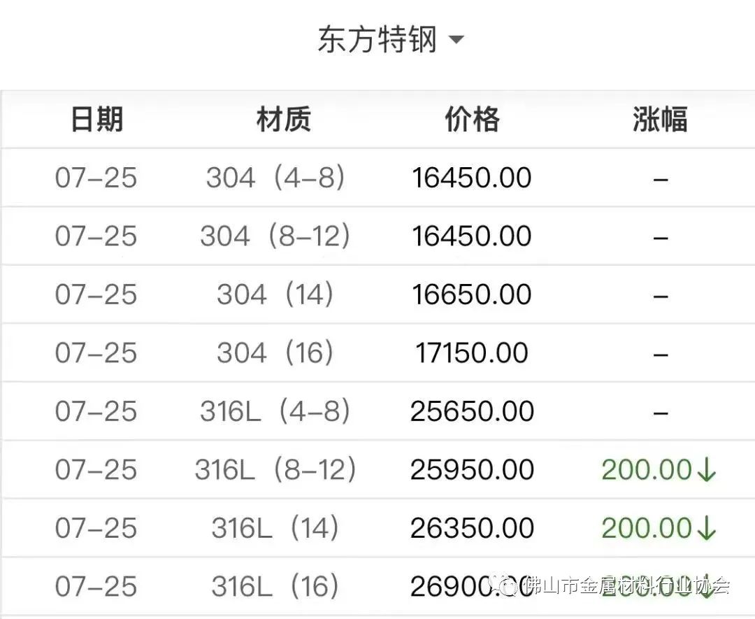 25日晚间,看见玩转不锈钢的杨林在朋友圈发布了行情资讯,摘录其中两个价格表如下: