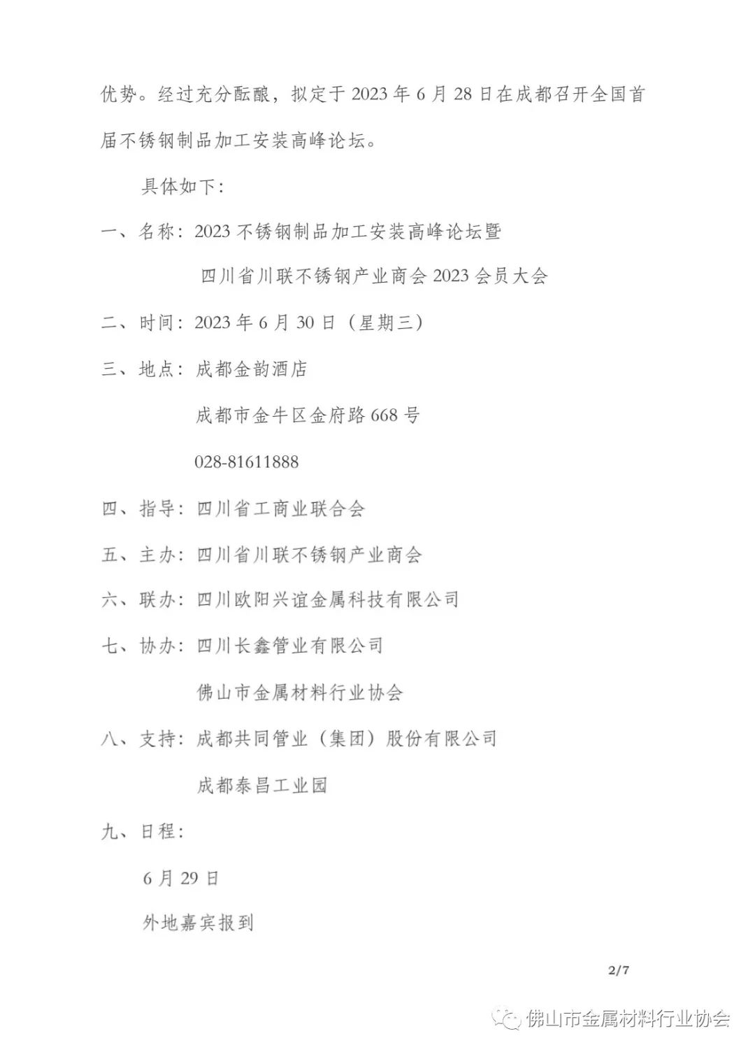 【不锈钢】6月30日,成都!2023不锈钢制品加工安装高峰论坛邀请函