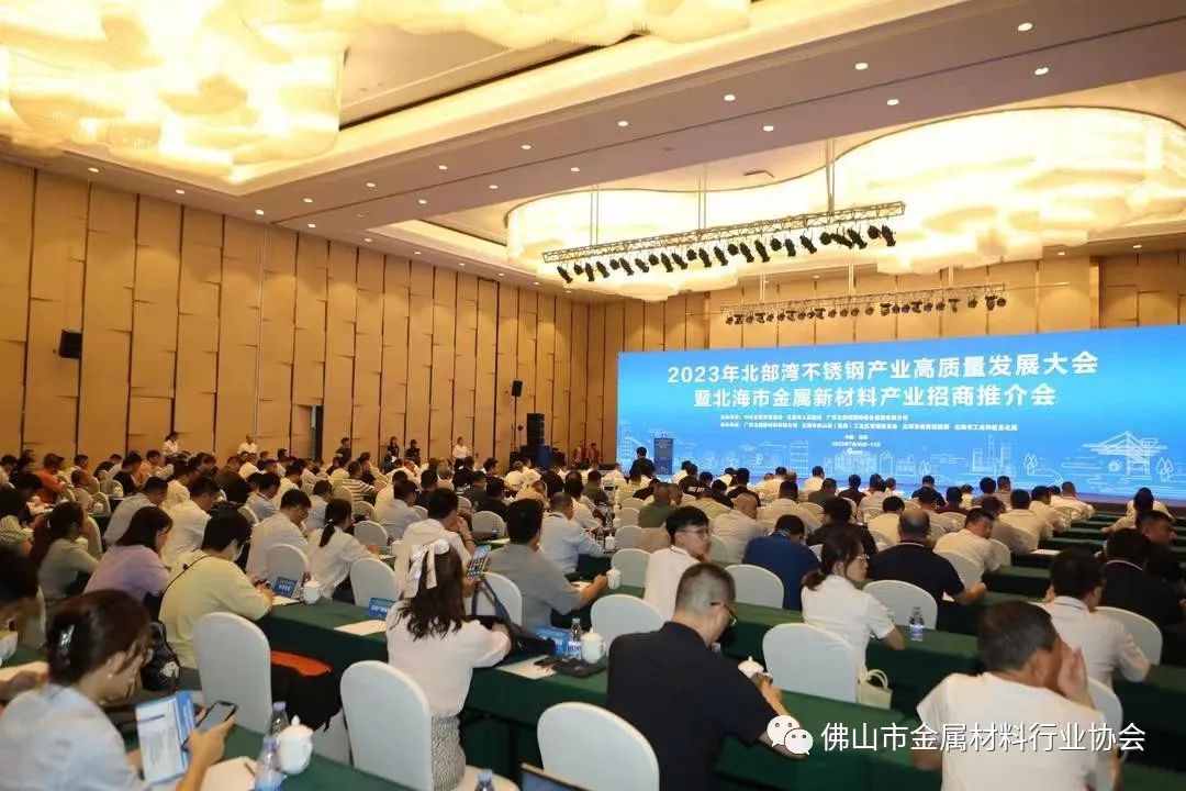 7月16日下午,佛山市金属材料行业协会执行会长李强应邀出席了在北海富丽华大酒店隆重召开的2023北部湾不锈钢产业高质量发展大会暨北海市金属新材料产业招商推介会,向参会代表作了《2023北部湾不锈钢大市场展望》主题报告。李会长从六个方面系统分析了北海市-北部湾不锈钢大市场的发展动力与商机潜力。