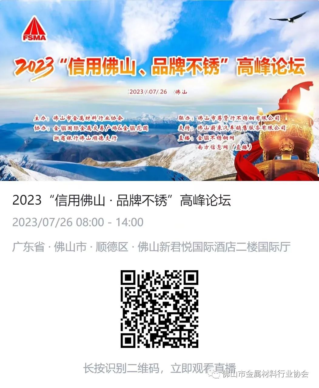 【不锈钢】2023“信用佛山、品牌不锈”高峰论坛:今天上午8:30在新君悦国际酒店召开