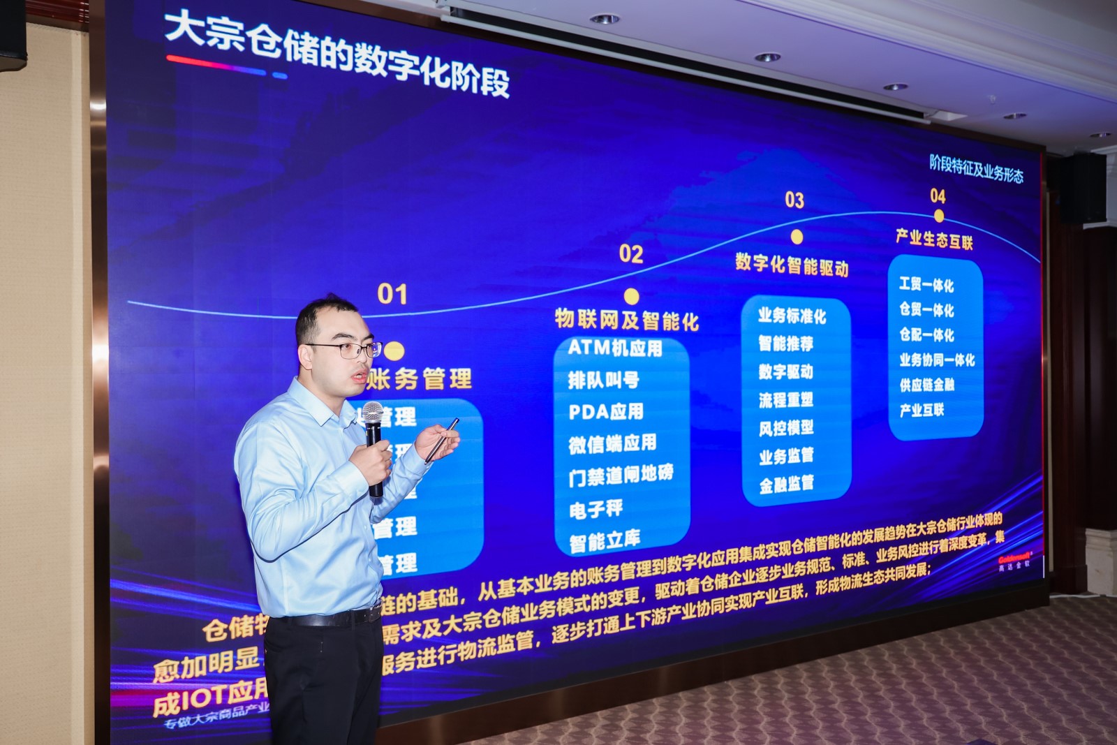 杭州高达软件系统股份有限公司金融事业部总监刘正天以《大宗仓储园区数字化及物联网监管仓案例分享》为题进行分享。他表示,高达软件是一家1997年成立的软件公司,在大宗仓储数字化方面,高达软件经历了构建信息化系统、对标相关行业、业务标准化梳理三个阶段,与多家物流企业建立了长期合作。