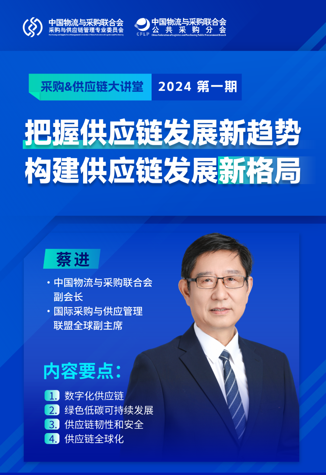 1月10日,由中国物流与采购联合会公共采购分会和采购与供应链管理专委会联合主办的2024年“采购&供应链大讲堂”直播活动正式开讲。该系列直播将往年“采购公益课堂”“供应链大讲堂”系列直播活动进行整合,将于每周三下午三点在“中物联采购委”微信公众号上进行直播。