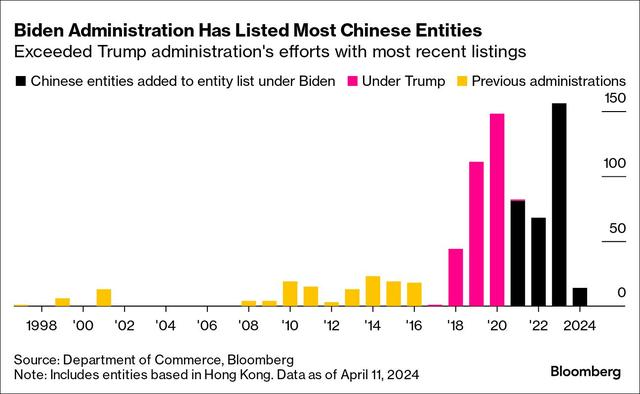 据观察者网报道,随着美国商务部当地时间4月11日再将6家中国企业纳入出口管制实体清单,拜登政府所制裁的中国实体数量累计达319家,这不但超越特了朗普政府,同时也是美国历届政府中最多的。