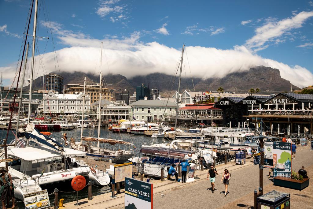 2023年2月16日,人们在南非开普敦的一处海滨码头游览。新华社记者张誉东摄