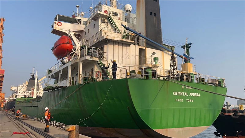 中苏海运直航货轮靠泊苏里南码头。中国驻苏里南大使馆供图