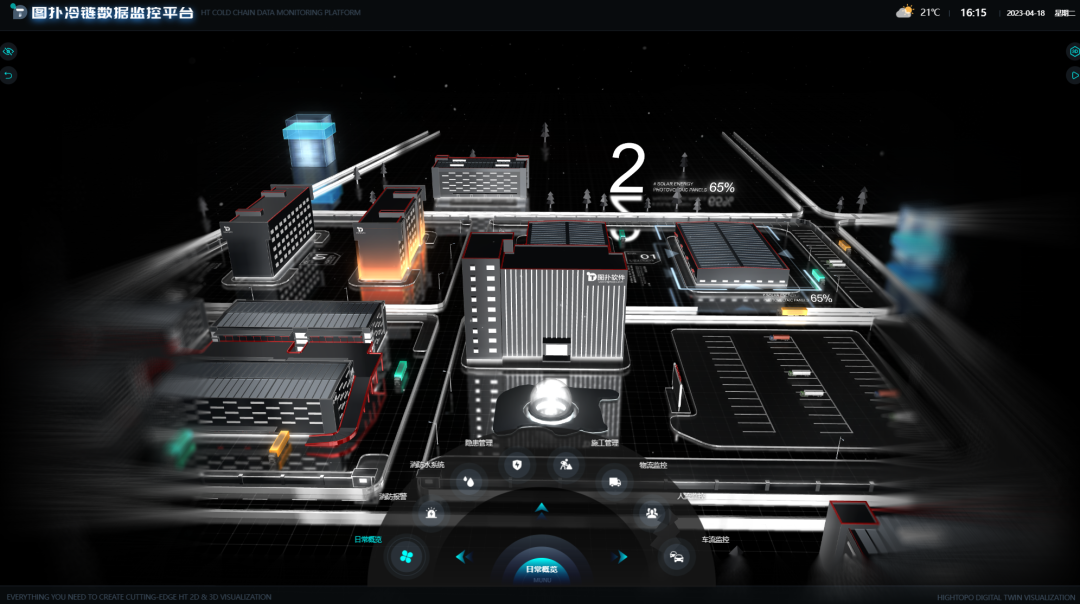 本文采用的是图扑软件自主研发的 HT for Web 产品来构建轻量化的 3D 可视化场景,建立动态的数字化冷链园区模型,智慧冷链园区可视化系统。