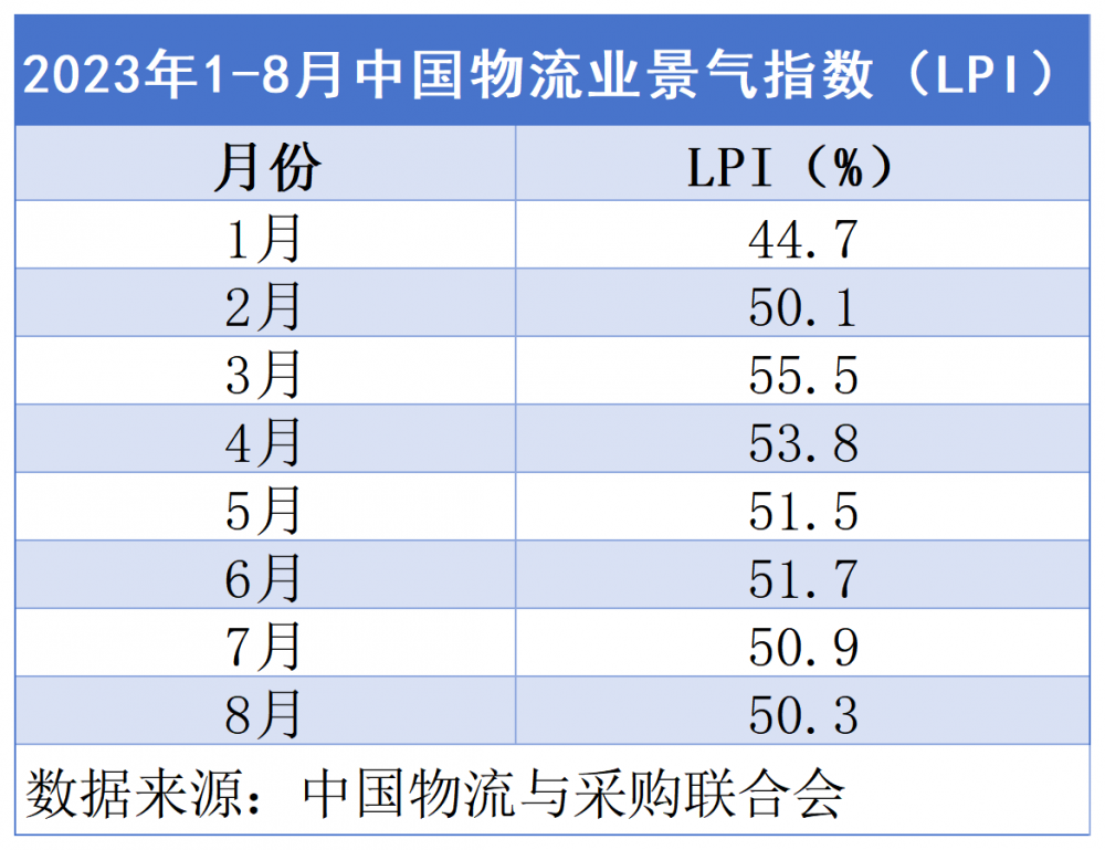 物流业作为经济运行中的“经脉”,一头连着生产,一头连着消费,从中能够反映出市场供需的冷暖和经济的活跃度。根据中国物流与采购联合会发布数据,8月,中国物流业景气指数为50.3%,较上月回落0.6个百分点,但仍然保持在景气区间。
