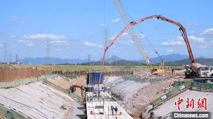 连日来,在浙江金华港兰溪港区铁公水多式联运枢纽铁路专用线工程建设现场,工人们正在实施方村特大桥33号、34号桥墩浇筑作业。