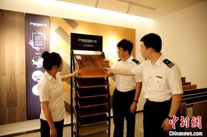 湖州海关工作人员在检查木地板质量。湖州海关供图