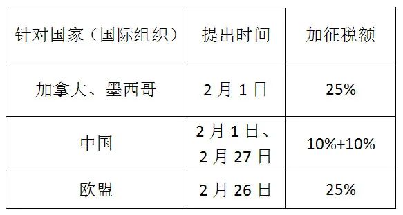 今年2月以来,特朗普陆续宣布对中国、墨西哥、加拿大等多个国家和地区加征关税。