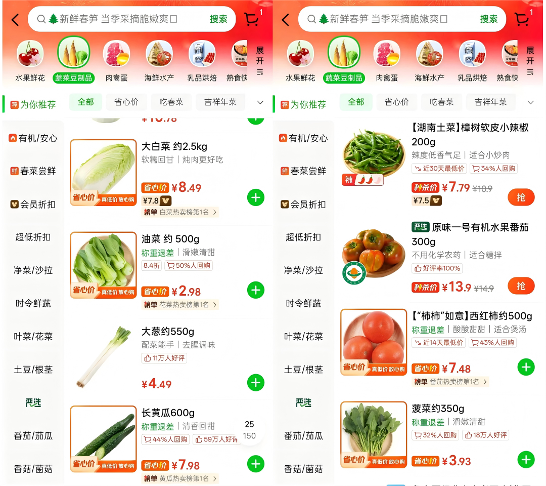 一名北京消费者表示,2025年春节前,农贸市场的黄瓜零售价格多为3元到4元之间(每斤,下同),而今年达到5元以上;往年3元的菠菜,今年价格也近5元;西红柿的价格则涨到6元以上。在大型连锁商超和即时零售平台,蔬菜的价格要更贵一些。