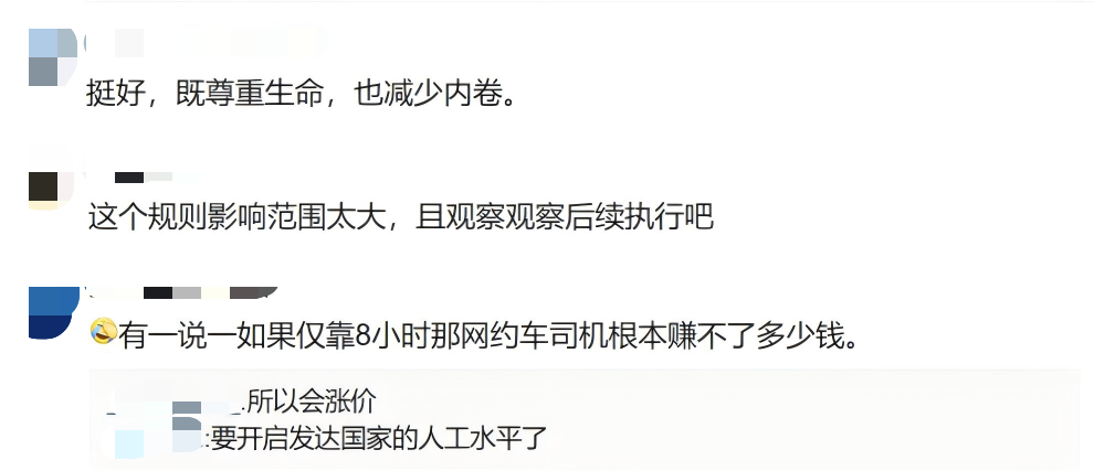 但另一方面,每天驾驶不超过8小时的规定也引发了网络上对客货运司机工作时长的讨论。在新规正式施行后,如何有效平衡交通运输服务人员的时间与收入,是一个重要问题。