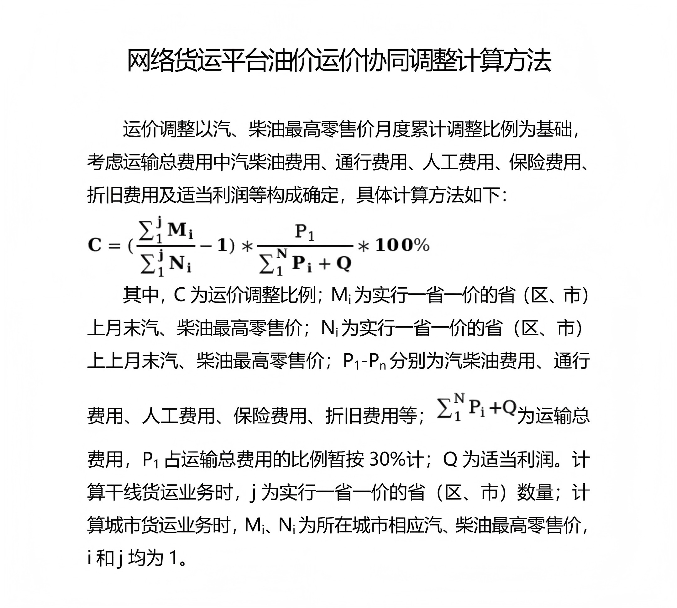 本文附油价运价协同调整计算方法: