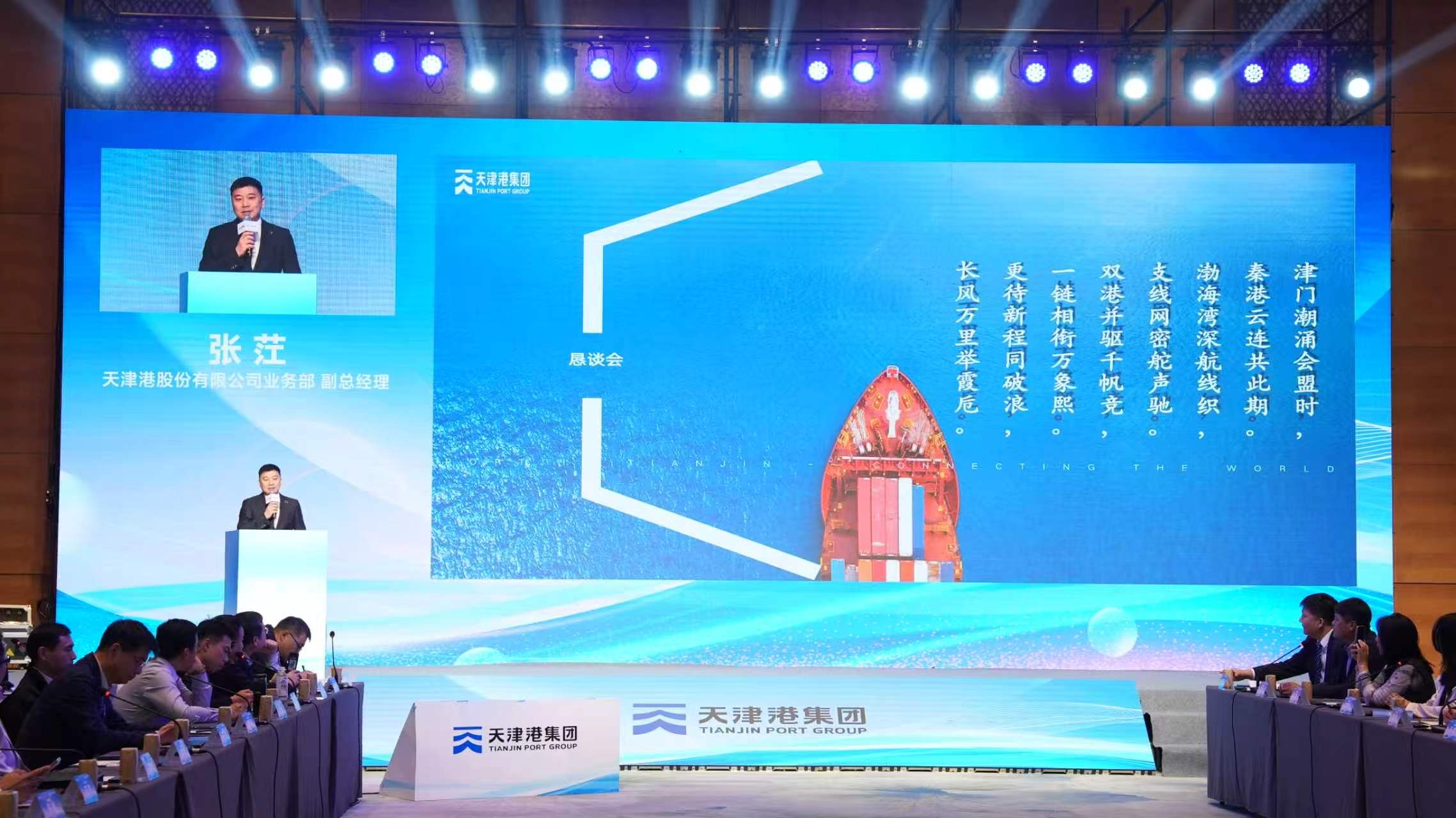 4月16日,由天津港股份有限公司、天津港物流有限公司主办的“聚势环渤海 合作创共赢”暨服务环渤海地区客户恳谈会在秦皇岛召开。会议立足服务环渤海世界级港口群加速建设,服务京津冀产业链供应链加速建设,是天津港深化“春雨行动”、精准服务腹地客户、推进港航物流一体化的重要实践。津冀两地口岸部门、港口、航运、物流、货主等百余名代表齐聚一堂,共商干支联动、"公转水"、多式联运协同发展,为畅通环渤海物流大通道、服务区域经济高质量发展贡献港航合作力量。