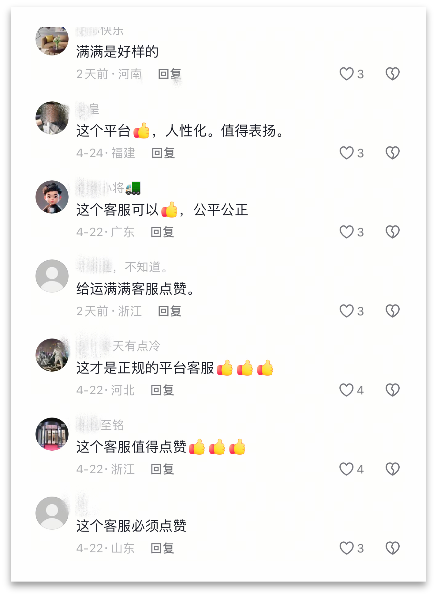 “跑货运的路上,最怕遇到纠纷没人说理,这位客服小哥处事公正、效率超高。也没有偏袒某一方,是什么就是什么。”武师傅的视频发布后迅速走红,评论区汇聚了全国各地的货车司机自发点赞留言。大家纷纷表示,运满满平台客服一次次公正高效的纠纷处理,让司机群体感受到了温暖与尊重。