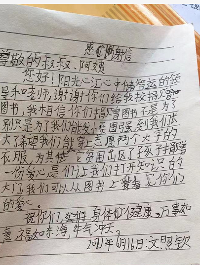 “我要考大学,传承你们的爱心”“谢谢你们为我们打开了知识的大门”……6月17日一早,还未离开桑植县,中储智运的工作人员就收到了一封封特殊的感谢信。稚拙的笔画字里行间满是最朴实的情感。