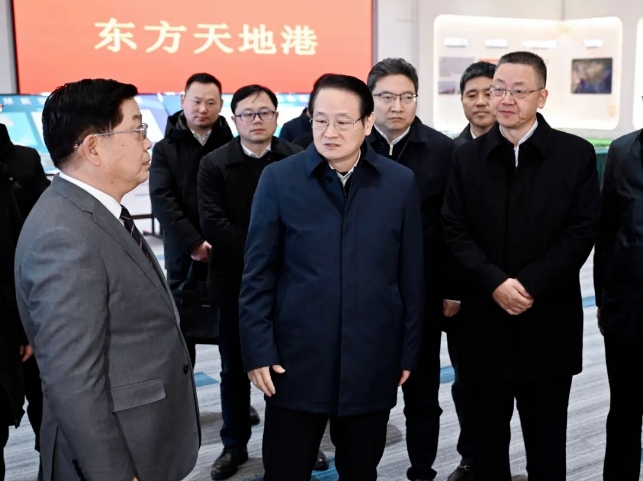 12月25日,浙江省委书记易炼红赴嘉兴全球航空物流枢纽、东方天地港建设现场,了解项目推进情况。潮新闻记者 胡元勇 摄