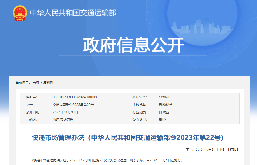 导读:《快递市场管理办法》共9章57条,主要内容包括:明确促进快递发展的保障措施,建立绿色低碳发展的制度导向,优化快递市场秩序的规制方式......