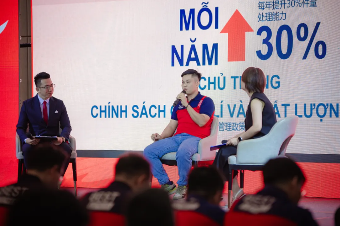 大会还邀请了越南本地加盟商分享他们的成功故事。比如,加盟商通过注重人员管理政策和服务质量管理,实现了业务量的显著增长。他们的经验分享为其他加盟商提供了宝贵的参考和启示。特别值得一提的是,本次大会还邀请了国内百世快运的优秀加盟商,他们分享了加入百世快运的故事和成就,进一步激发了加盟商的信心和动力。