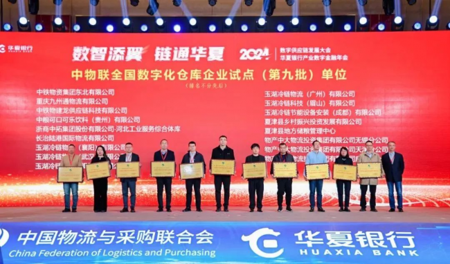 12月10日,玉湖冷链受邀参加在重庆举办的2024数字供应链发展大会。此次大会由中国物流与采购联合会(中物联)和华夏银行联合主办,汇聚行业专家与企业代表,共同探讨数字供应链与产业数字金融的前沿趋势。凭借卓越的数字化管理运营能力,玉湖冷链广州、成都、武汉、眉山、揭阳、襄阳项目入选“中物联全国数字化仓库企业试点(第九批)单位”。