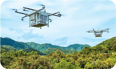 6月28日,在广东省广州市从化区天人山水荔枝园,物流无人机运输刚刚采摘的新鲜荔枝。