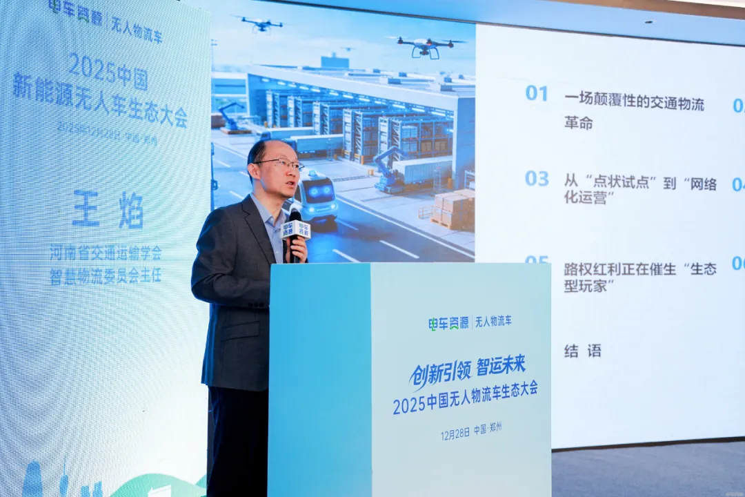河南省交通运输学会智慧物流委员会主任王焰演讲抛出观点:无人物流车是21世纪物流产业第三大关键创新,核心价值在于重构交通物流核心逻辑。它实现从“人适应车”到“车适应货”转变,打破时空壁垒,重塑产业生态,社会价值不断延伸,这得到企业实践印证。
