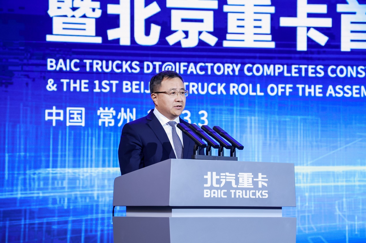 3月28日,中国首个重卡数字孪生智慧工厂落成投产暨北京重卡首台车下线仪式在北汽重型汽车有限公司举行。常州市委常委、市委秘书长杭勇,副市长徐华勤,北汽集团党委书记、董事长姜德义,副总经理蒋自力、胡汉军,北汽重卡重点客户、合作伙伴及全国媒体等500余人共同出席并见证。