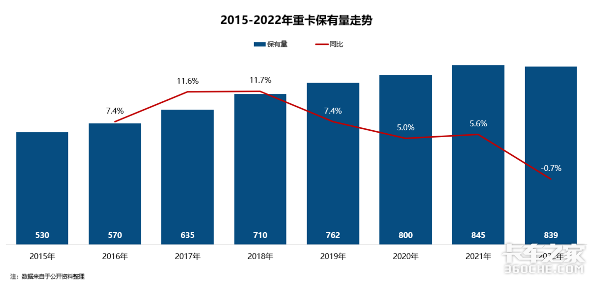 在全球疫情反复、外部环境复杂严峻、经济波动、治超治限常态化等综合因素的影响,重卡市场已经进入新一轮深度调整周期,结束了高速增长阶段,并正式由“增量竞争”进入“存量竞争”阶段。这一点从市场规模可以直观感受到,除了每年的市场销量出现“腰斩”外,整体保有量规模增长速度也在放缓,甚至在2022年出现了近年来的首次负增长,整个行业面临着新形势与新挑战。