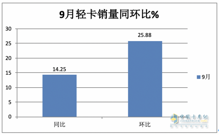 ---今年9月轻卡销量同比增长,据分析主要是得益于去年同期销量基数不高,另外就是目前经济大环境有所好转,对轻卡需求增加。