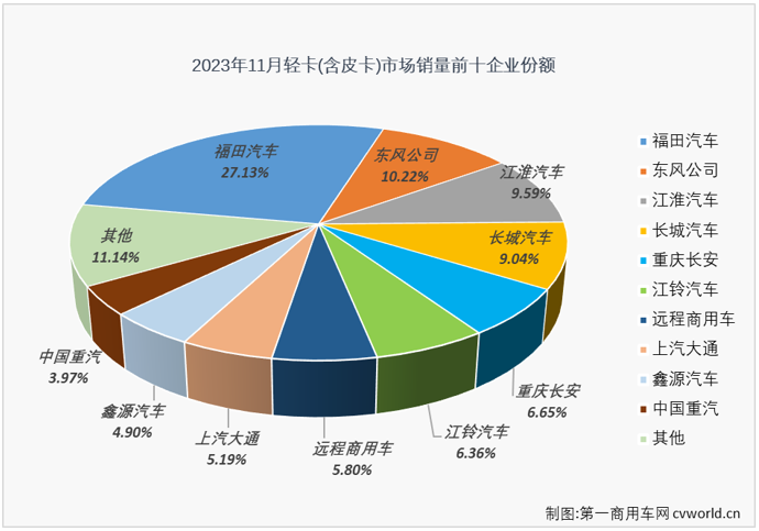 轻卡市场11月份的整体表现可以说是很不错,那么,轻卡市场的主角,各家汽车企业的表现又如何呢?